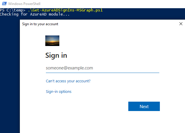 Download the Powershell script Get-AzureADSignIns-MSGraph.ps1 as zip file.