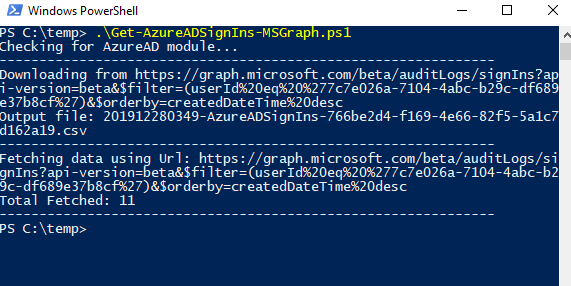 After a successful logon with your guest account in the Inviting Tenant, the script will run and dump your sign-ins into a csv file.