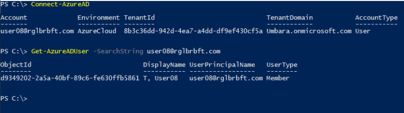 Another way is to use PowerShell again. After connecting to Azure AD, run the command Get-AzureADUser -searchstring <your user name>.