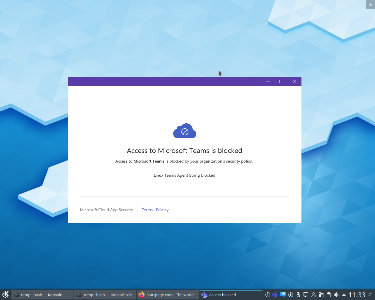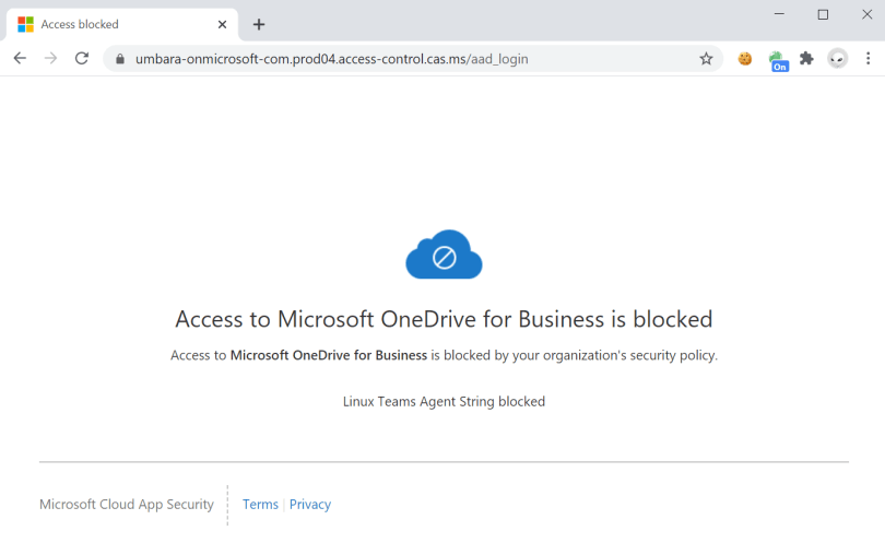 Once an access policy with the above filter is in place, the Microsoft Teams Client for Linux is blocked: